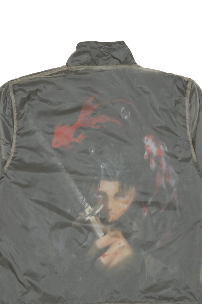 眼光鋭いチヒロのバックプリントが印象的な、デザイン性の高いジャケット。