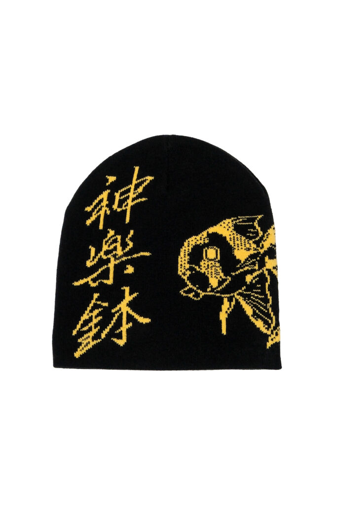 チヒロの剣技を想起させる金魚のデザインとともに、作品名を大胆に漢字であしらったビーニー。