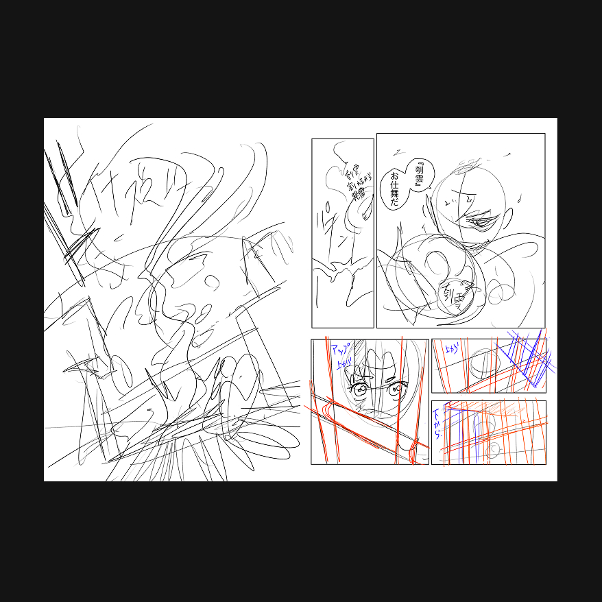 下書きで出来上がった構図、演出をさらに磨き抜く清書が描かれ、クライマックスが完成。 『カグラバチ』はこのようにして出来上がっていく。